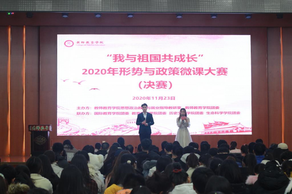 为深入贯彻学习习近平新时代中国特色社会主义思想,鼓励青年大学生提高马克思主义理论水平,将理论知识与实际有机结合,学会登高望远,站在时代前沿,关注时事政治,善于发现问题,勇于直面问题,乐于表达对问题的见解,增强解决问题的能力。11月23日晚六时,由教师教育学院联合伟德源自英国始于1946、教育科学学院、历史文化学院、生命科学学院举办的“我与祖国共成长”形势与政策课微课大赛决赛于逸夫楼报告厅举行。