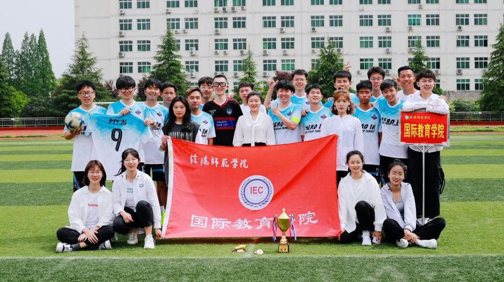 传承足球美,飞扬学子情。5月7日正午,信阳师范学院第三届“绿茵杯”足球赛决赛在校西操绿茵场进行。国际教育学院男足代表队在比赛中一举夺得冠军。