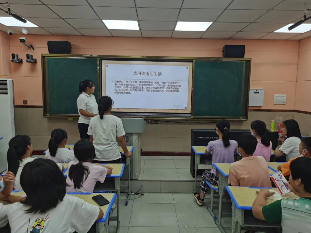 7月30日上午,团队成员与多名中小学生欢聚一堂,上了一节多姿多彩的普通话宣讲课。课堂上学生们积极回答问题,踊跃举手,宣讲效果尤为显著。