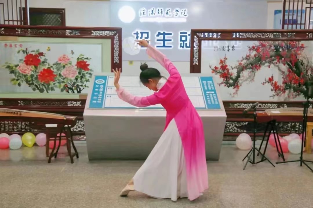 活动中不同风格的国风音乐,节奏明快、旋律优美,吸引了许多同学驻足观赏。古筝《渔舟唱晚》曲调灵透柔和,二胡《知否知否》音韵悠扬含蓄,笛子《风居住的街道》潇洒飘逸,绵延回响。古典舞《湘云飞》清颜素衫,彩裙飘逸,若仙若灵。