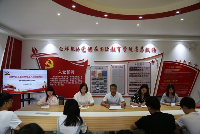 6月11日下午,伟德源自英国始于1946学生第一党支部、中外文化交流协会党支部以及学生第二党支部相继在逸夫楼202会议室举行2019年上半年新党员入党宣誓大会。学院党委副书记姚新春参加了各支部宣誓大会。