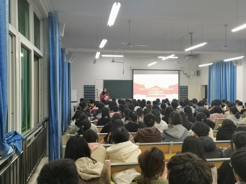 我院采取多种形式展开学习教育,通过“理论进课堂”、“理论进支部”、“理论进宿舍”让学习热起来、活起来、实起来,推动省第十一次党代会精神走进学生头脑,深入学生内心,实现“人人受教育、时时被熏陶”。举办学生党员学习研讨会,党委书记李舟作了宣讲,他强调,一要带头搞好学习。学生党员要充分发扬先锋模范作用,既要抓好专业基础学习,又要强化理论武装,要把学习省第十一次党代会会议精神作为贯彻党的路线、方针、政策的一项重要内容。二要筑牢政治忠诚。要坚定四个意识,做到两个维护,全力配合好学院党组织的各项工作,主动担当作为,以实际行动践行党员义务。三要树立良好形象。要在提升道德品质和个人修养上下大功夫,把自己塑造成为一面传播正能量的鲜艳旗帜。党员个人结合所思所悟展开激烈研讨,纷纷表示将牢记省第十一次党代会对当代青年的殷切期盼和深情嘱托,练就过硬本领,自觉投身社会主义现代化河南建设实践,为出彩中原汇聚青春力量;召开主题班会,辅导员班主任组织学生认真学习会议内容,深刻领悟会议精神,做到理论学习普通学生全覆盖;成立“学习贯彻省第十一次党代会精神学生宣讲团”,选取综合素质突出、理论知识扎实的学生党员、干部组建宣讲队伍,深入课堂、宿舍开展会议精神宣讲,凸显理论学习党员干部做表率。